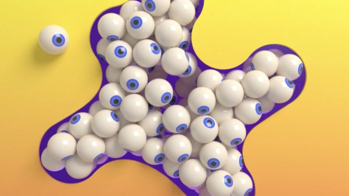 Throughout the idents and Splat explorations, one can find several nostalgic elements from early Nickelodeon and kids’ TV from the mid-2000s. Slime, a quintessential Nickelodeon symbol, makes appearances as a 3D texture interacting with typography and as a prop in live-action IDs. During shoots, Roger worked with kids, giving them the freedom to paint murals, slurp noodles, or get their hands messy, resulting in fun and engaging visuals.