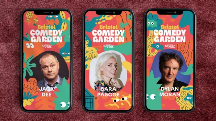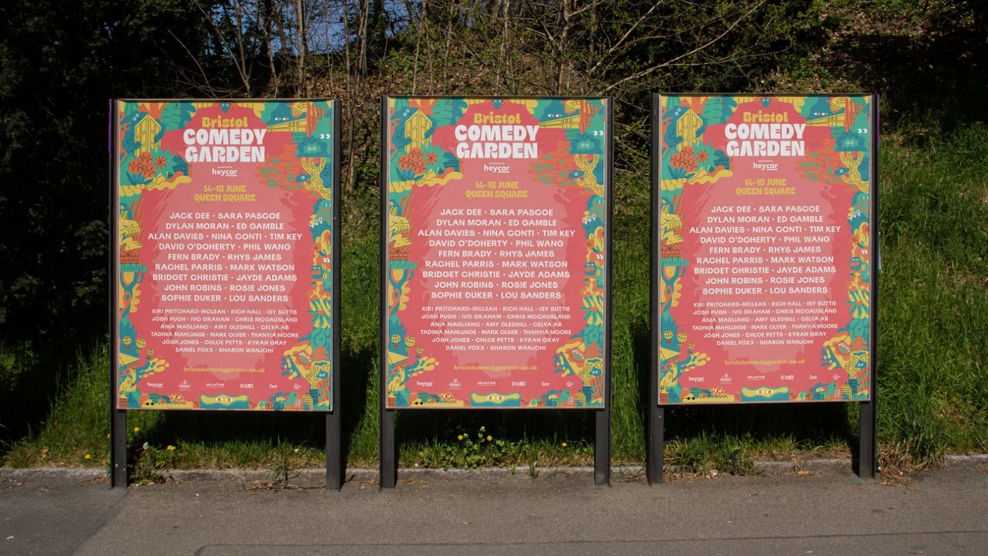 Unlike previous years, where Bristol Comedy Garden utilised illustrations sparingly with the help of a toolkit, the revamped identity expands on this concept, incorporating a fully-illustrated border to further enhance its visual appeal. Oat Studio employed complimentary colour palettes and site-specific illustrations to subtly differentiate the branding across the series of events.