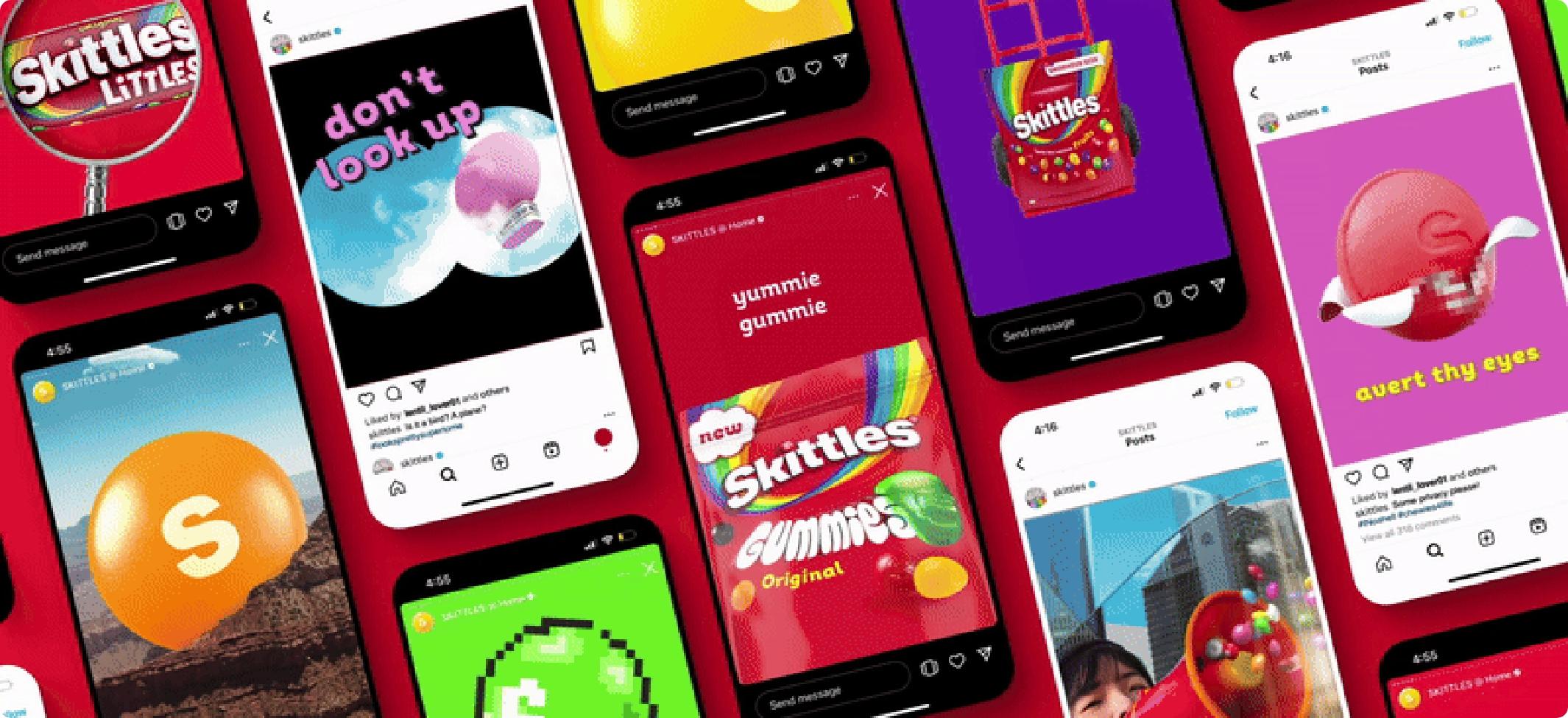 This refresh aligns Skittles with an aesthetic that revives the past in an eccentric way, making it perfect for playful reinterpretations. Taglines like “taste the rainbow, refresh the rainbow” and “is it a bird” nod to the idea that these lentil-shaped sweets are now whimsically landing—like meteorites—at iconic locations like Stonehenge and The Grand Canyon. This trend mirrors the recent Snapchat Less Social Media campaign, which emphasised fun and lightheartedness over anxiety-inducing social interactions by blending the app’s filter features with old-school, Facebook-style photo albums. The campaign’s absurdity stemmed from its chaotic visual mashup, yet it stayed true to Snapchat’s essence.