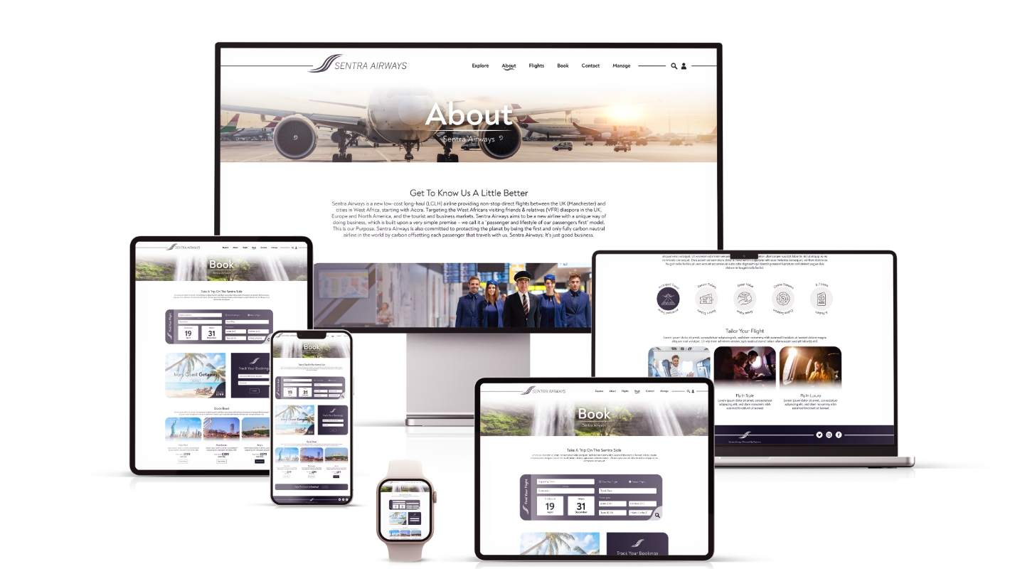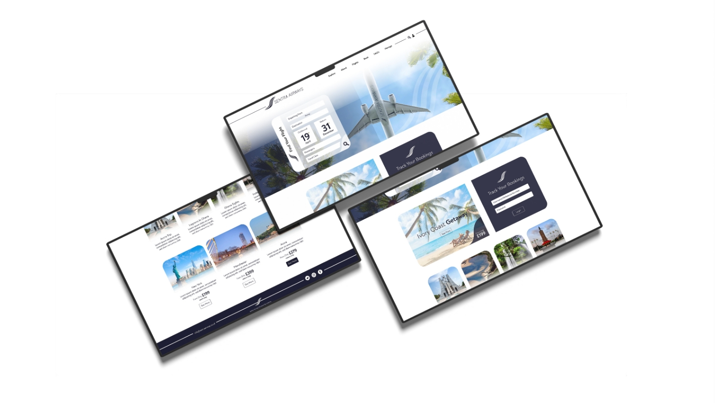 When Sentra Airways approached us, their requirements included the creation of a logo, brochure, website, and animated videos for their flight services.